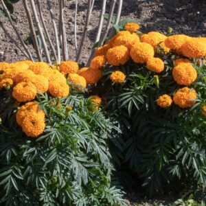 This early flower marigold has spectacular bright orange flowers ideal for patio pots and as a border plant. The medium size plant keeps flowering until the start of frosts. The frilly flowers tell their own story!
