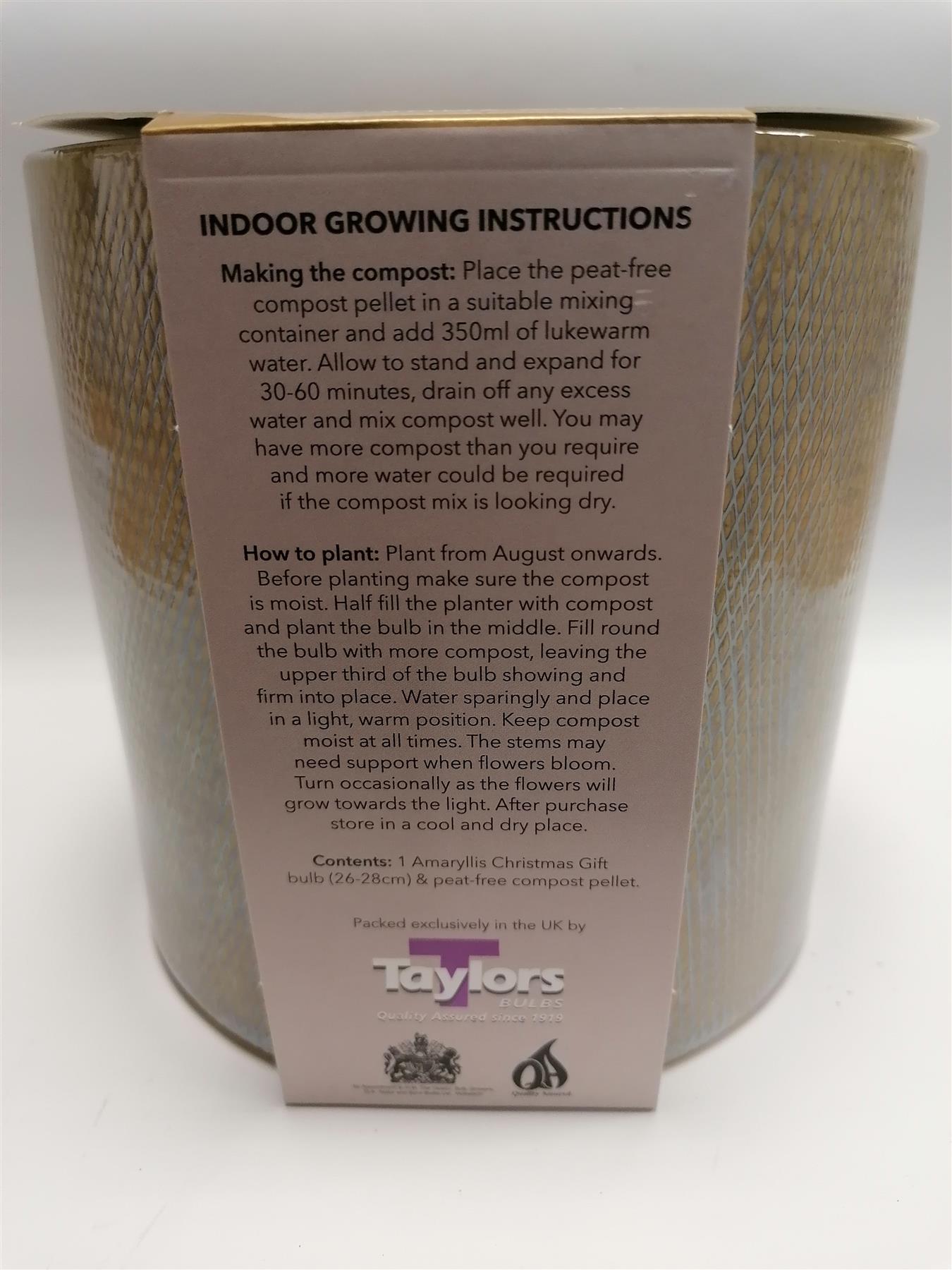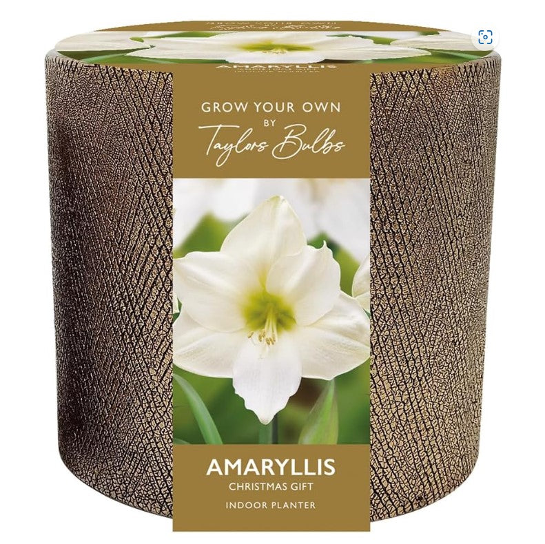 Kit Contains: 1 large Christmas Gift amaryllis bulb 1 Taupe Ceramic Pot 1 bag of compost suitable for amaryllis bulbs