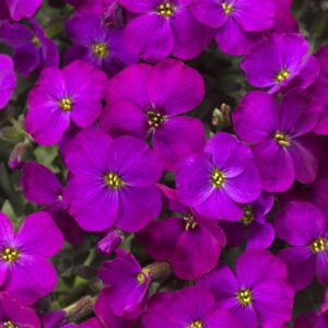 This hardy rockery perennial is an F1 hybrid form of Aubrieta that is very vigorous and uniform. The compact plants produces huge numbers of small purple flowers that will completely obscure the foliage. A must for the rockery or patio pots.