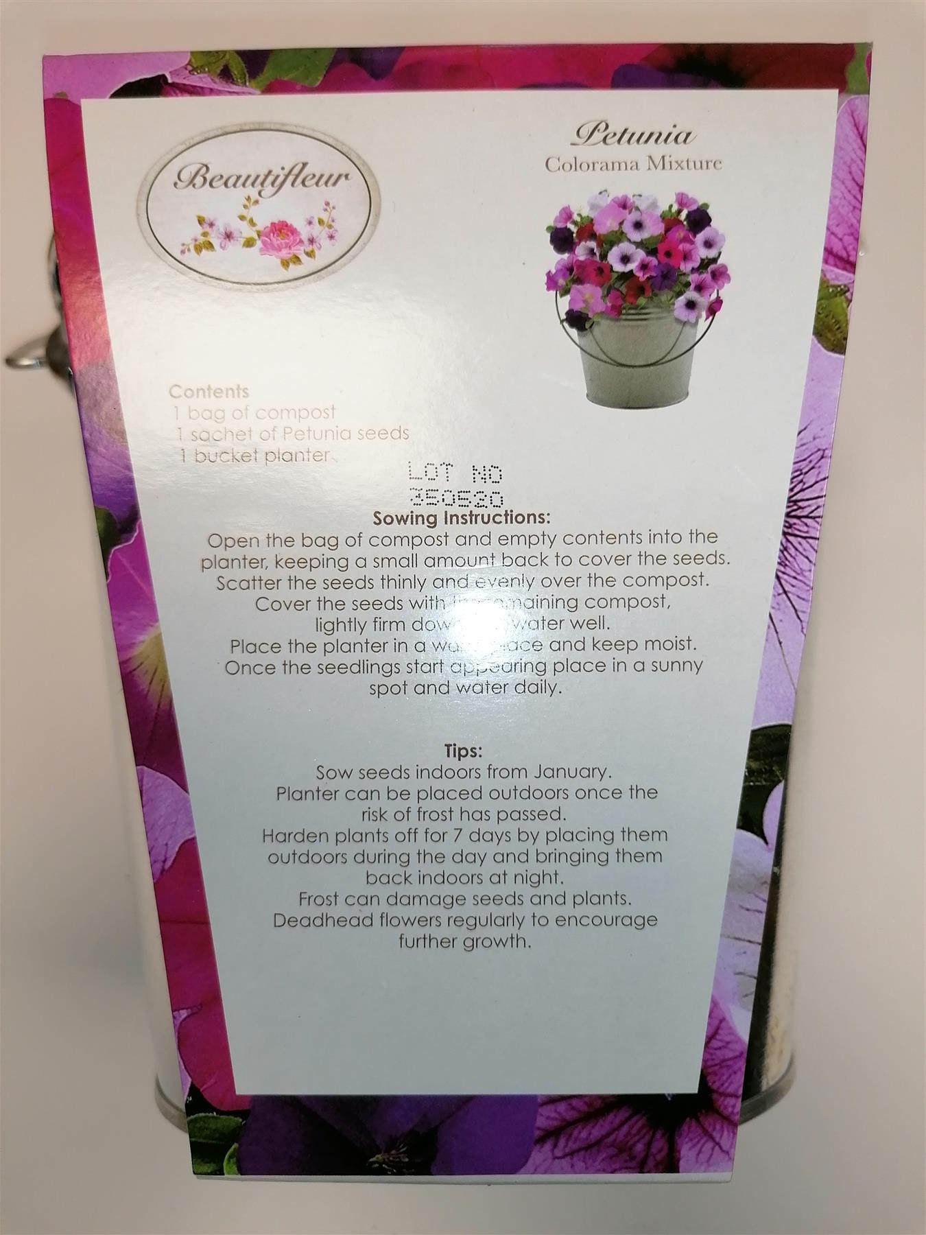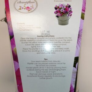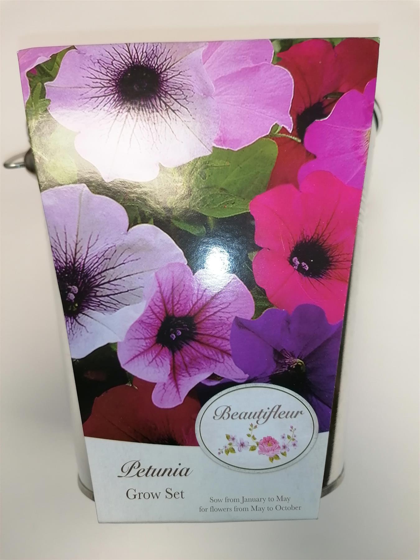 Petunia grow set with seed, compost and metal planter.