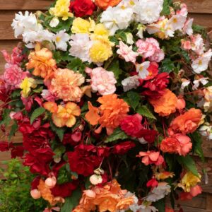 Sun Dancer Mix delivers a spectacular display of large begonia flowers. Its perfect for hanging baskets. The big double blooms come in a range of shades including white, red, pink, orange and salmon. This is a well branched type cascading upto 40cm. Flowering will continue from June to October.