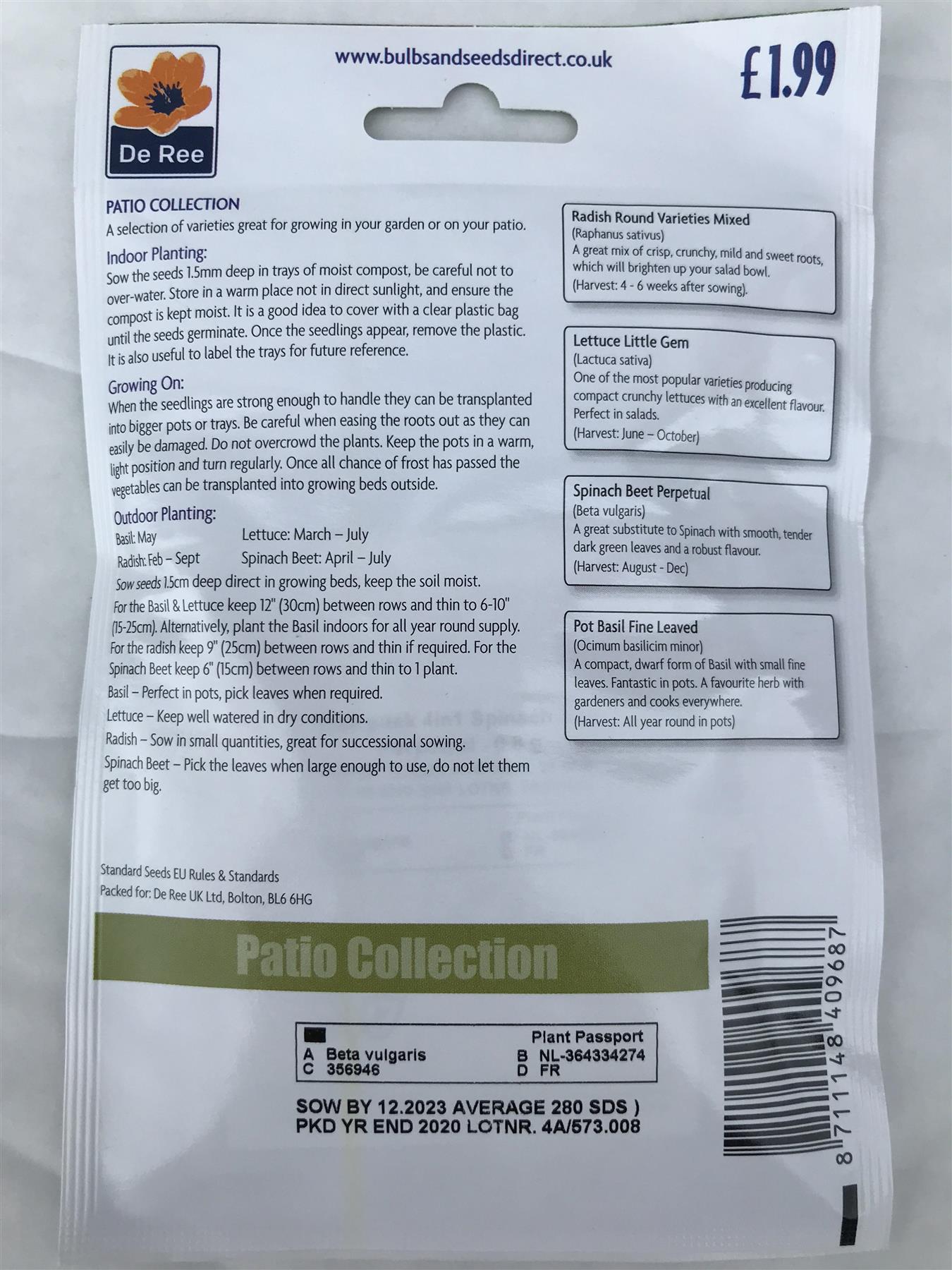 De Ree – Patio Collection Seed 4 type Radish Lettuce Spinach Basil