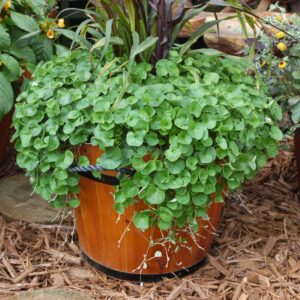 Emerald Falls is the perfect variety for hanging baskets and mixed containers. It has rounded leaves and trails quickly spreading across the plant. It is a great ground cover plant. These pellets contain multiple seeds. This is a tender perennial that tolerates higher temperatures and down to 4C