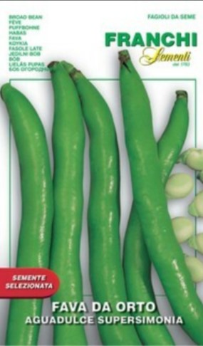 Aguadulce Supersimonia is a mid/early garden variety, producing green pods about 30 cm long. Each pod contains eight to nine broad beans and the plant will reach about 120 cm in height.