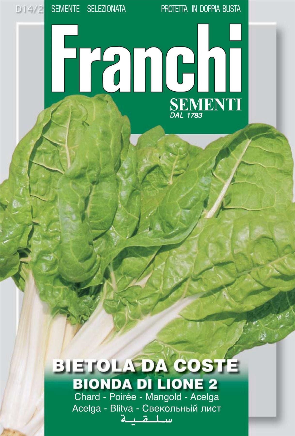 SWISS CHARD DA COSTE BIONDA DI LIONE � Mid-early. Large bunchings of light green leaves with thick, white, tasty stalks.