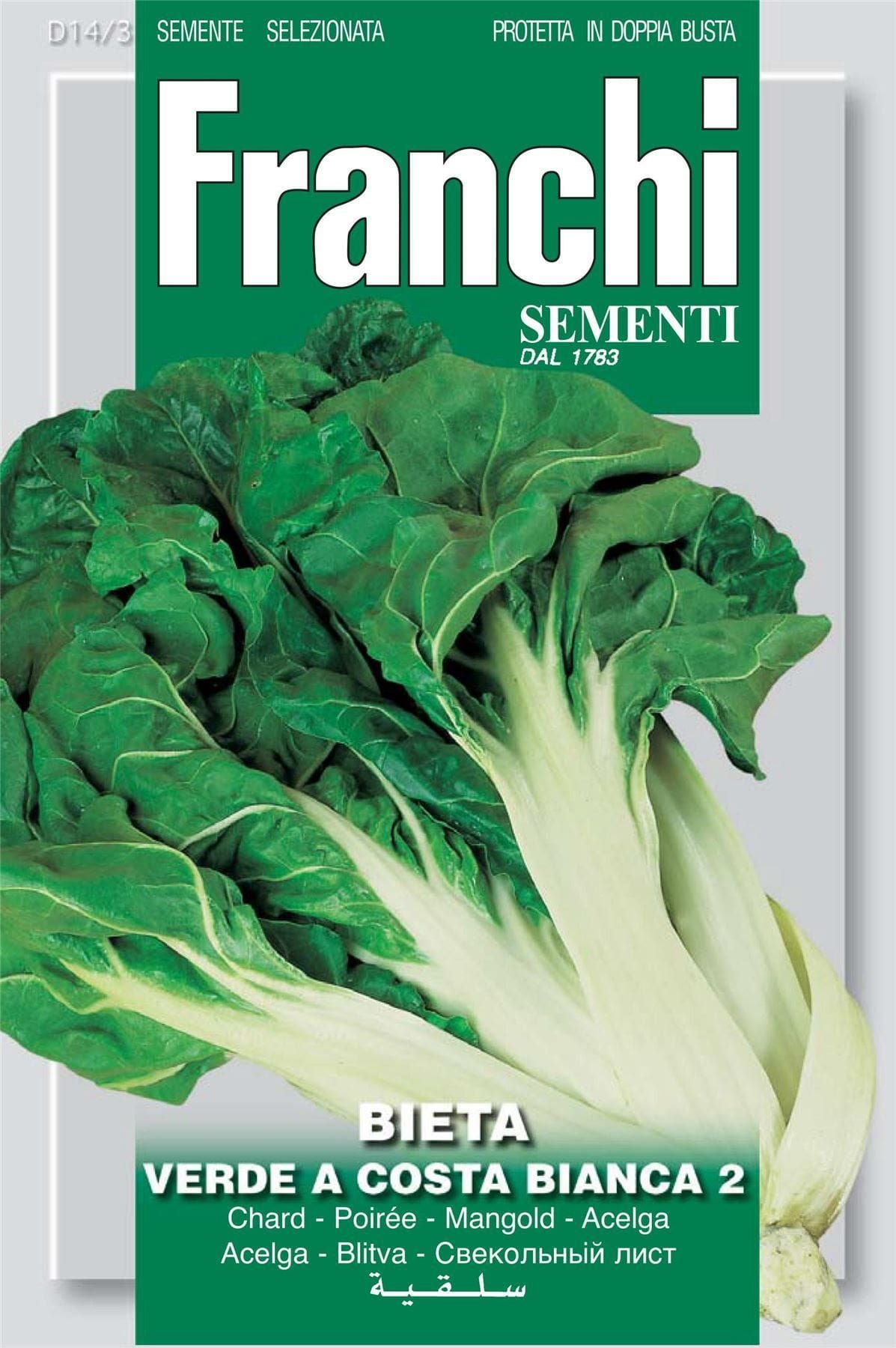 SWISS CHARD SILVER COSTE VERDE A COSTA BIANCA Mid-early. Vigorous plant with large meaty stalks, dark green leaves and pronounced veins