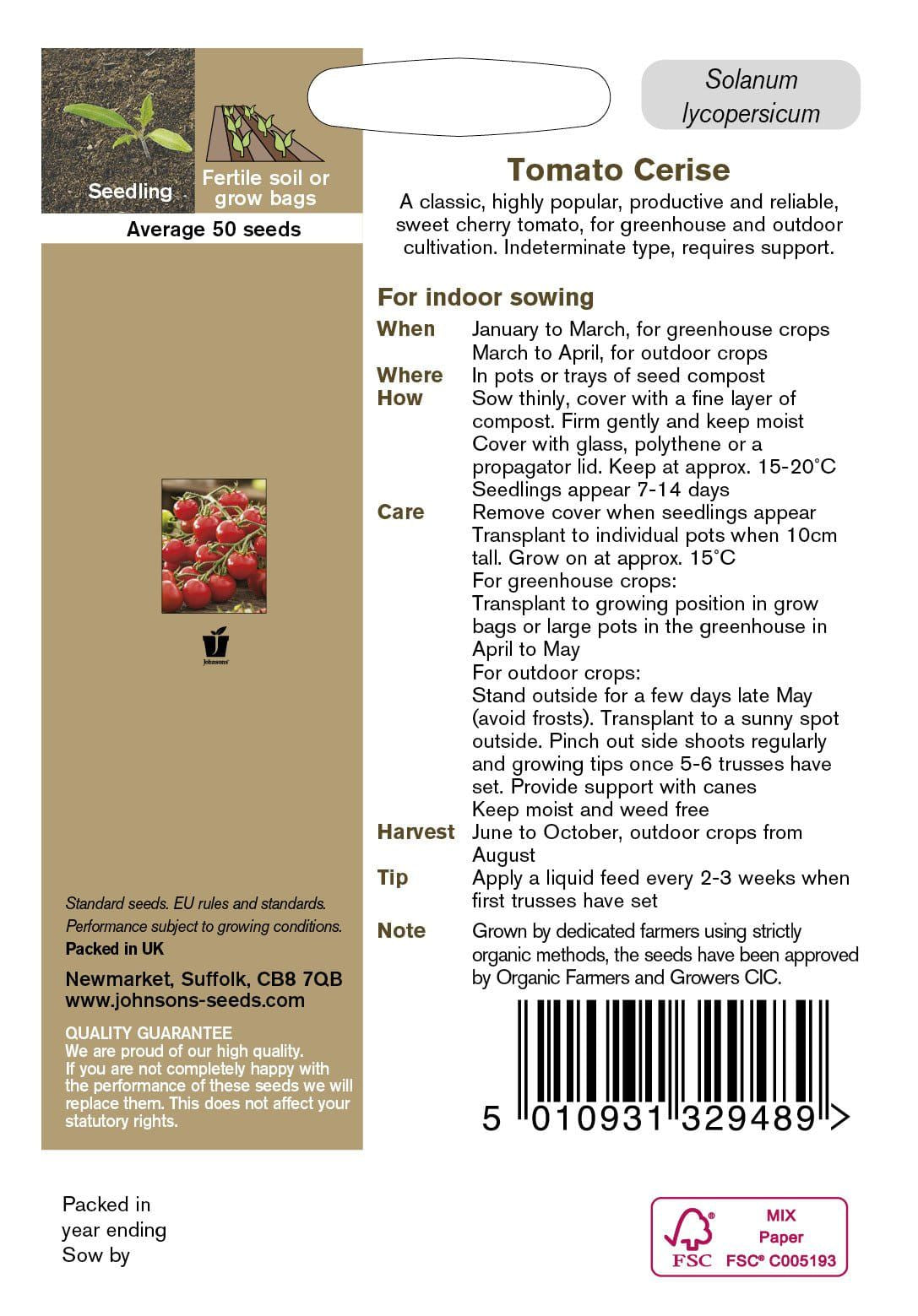 Johnson Seeds Organic Tomato Cerise 50 Seeds