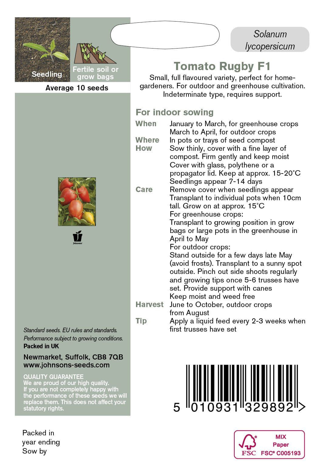 Johnson Seeds Tomato Rugby F1 Hybrid 10 Seeds