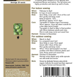 Produces great numbers of firm sprouts with exceptional flavour and texture. The tall stems are highly productive and stand up well to frosts.