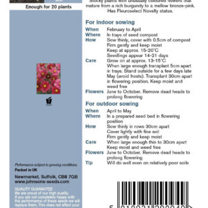 Large, early flowers change colour with age Stocky plants with unusually coloured flowers that mature from a rich burgundy to a mellow bronze-pink. Has Fleuroselect Novelty status.Height: 75cm Half Hardy Annual