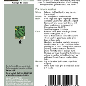 Cucumis sativus Sweet, mini-cues, a traditional favourite still popular today Prolific crops of high quality, fantastically sweet baby cues. For best flavour pick when 10-15cm long. Best grown in a greenhouse or cold frame.