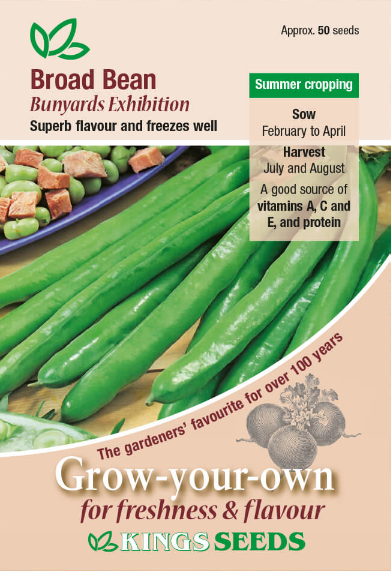 Bunyards were first introduced over 100 years ago. It is a heavy cropping, white seeded type with long pods of 8 or 9 beans. The beans have a good flavour and a good freezer.