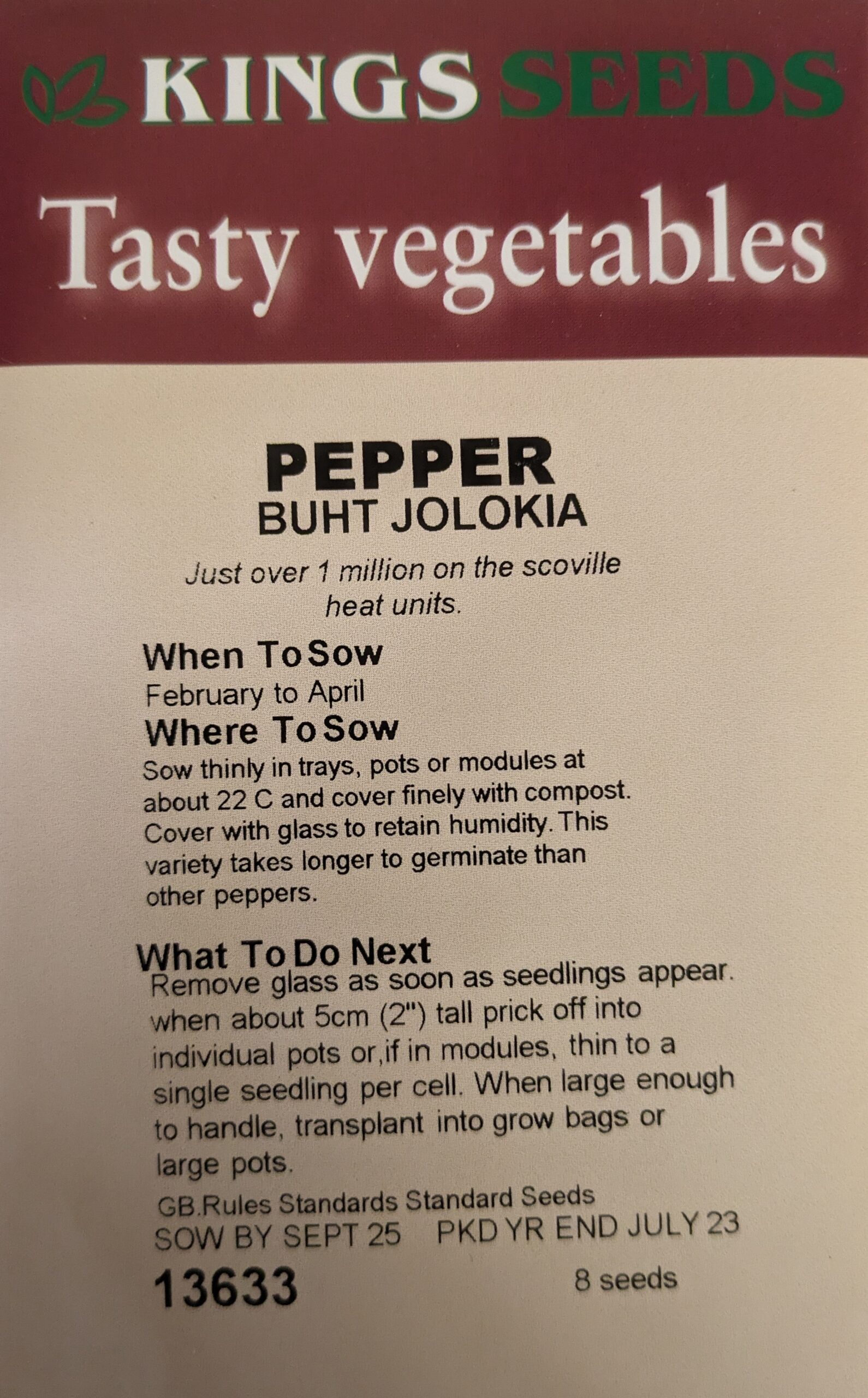 Not for the faint hearted! with a Scoville heat rating, measuring over 1 million! Please note this is a Chinese type and takes slightly longer to germinate than other peppers so requires an early sowing and is best grown under glass. Sow Feb to April
