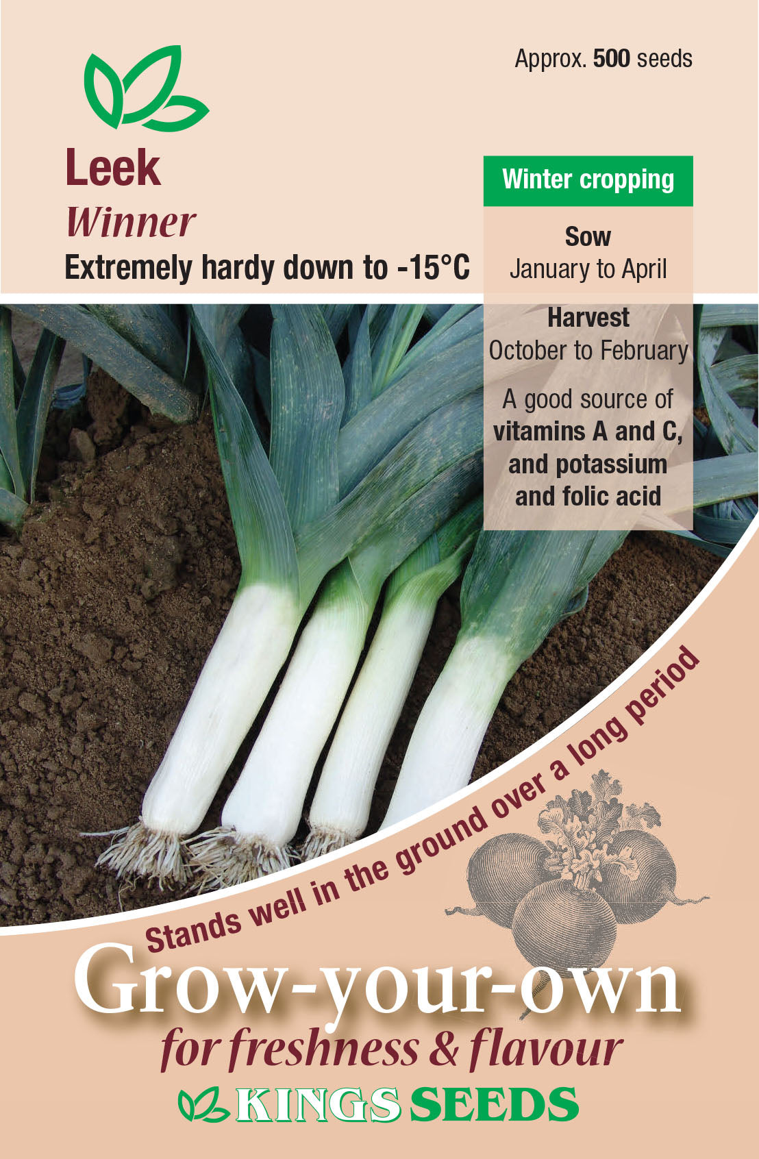 Dark blue green foliage producing thick white stems 20-25cm, ideal for Autumn harvesting from October to February. Extremely hardy down to -15 degrees celcius. Sow Jan to April