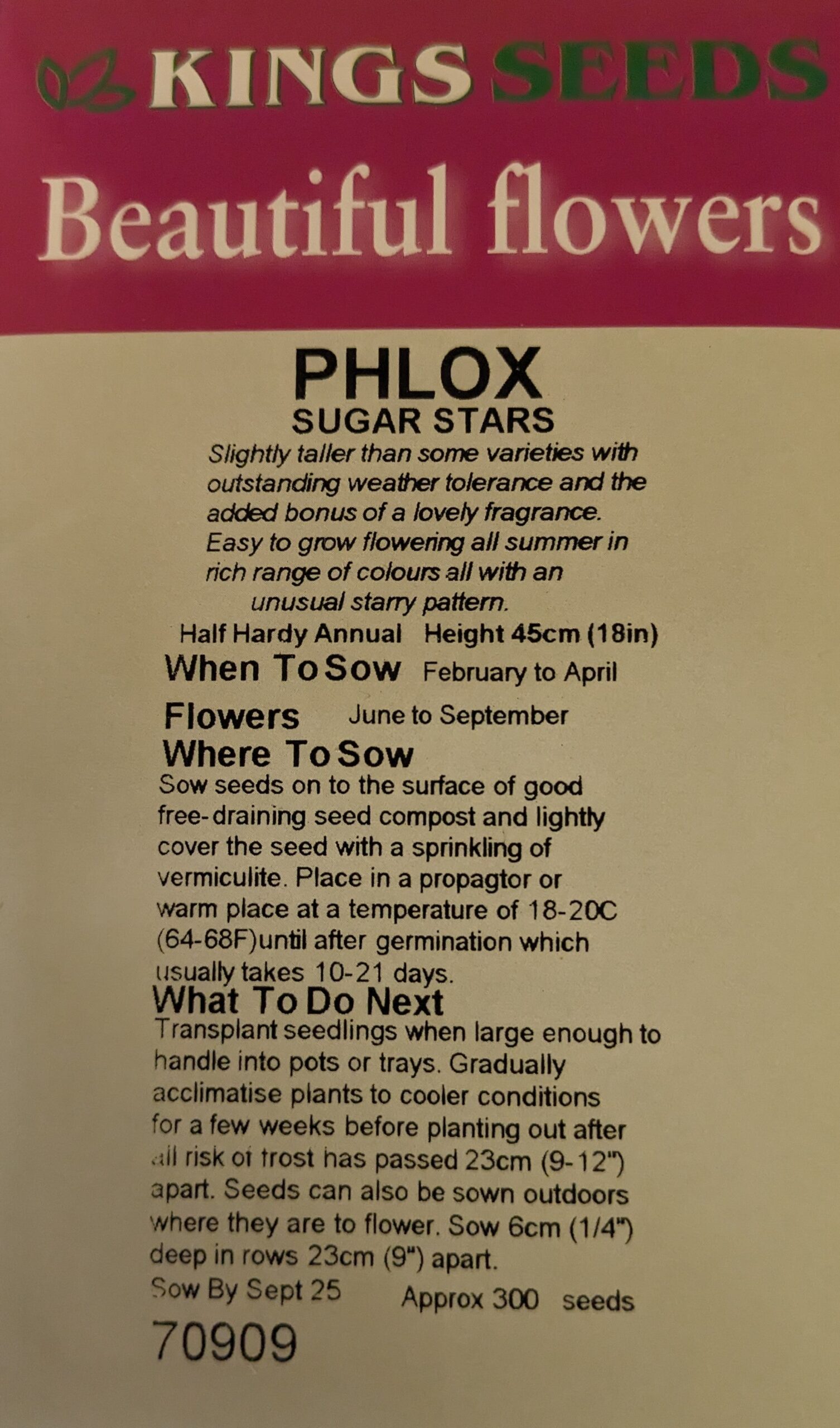 Kings Seeds Phlox Sugar Stars 300 Seed