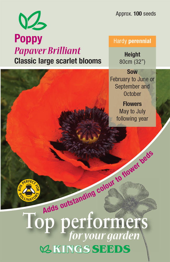 Kings Seeds Poppy Brilliant 1000 Seed