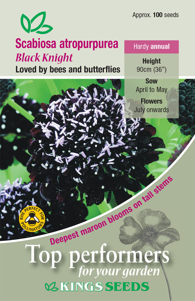 Deepest maroon, almost black blooms with contrasting white stigmas. Ideal for adding height to border. Attracts bees and butterflies.Height: 90cm Hardy annual