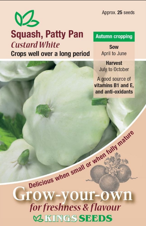Custard White is what the Americans class as a summer squash. This variety is not for winter storing but is really delicious when enjoyed fresh. It produces creamy white flat fruits with a scalloped edge from a bush habit. These squash do keep for a long time.