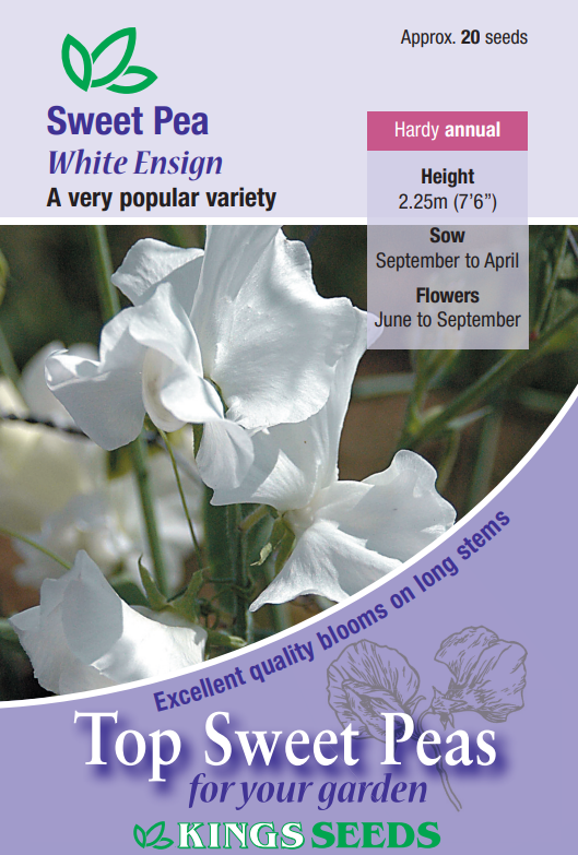 Kings Seeds Sweet Pea White Ensign 20 Seeds