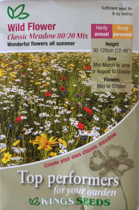 Kings Seeds Wild Flower Mix Classic Meadow 80/20 ( Contains Grass) 25g Seed