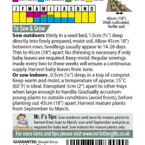Extremely attractive, versatile leaves. Great cooked or for baby salad leaves. Excellent source of vitamin C and vitamin A