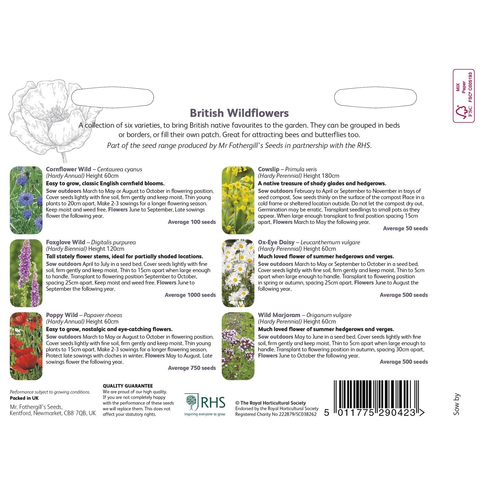 Part of the seed range produced by Mr Fothergill’s Seeds in partnership with the RHS.