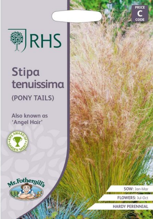 This wonderful semi-evergreen grass produces year-round interest, with wispy, pale yellow-green leaves topped with fluffy plumes of silver-green flowers, maturing to blonde buff. It is very elegant, moving in the slightest breeze. Ideal for dot planting or as feature plants in a mixed border.