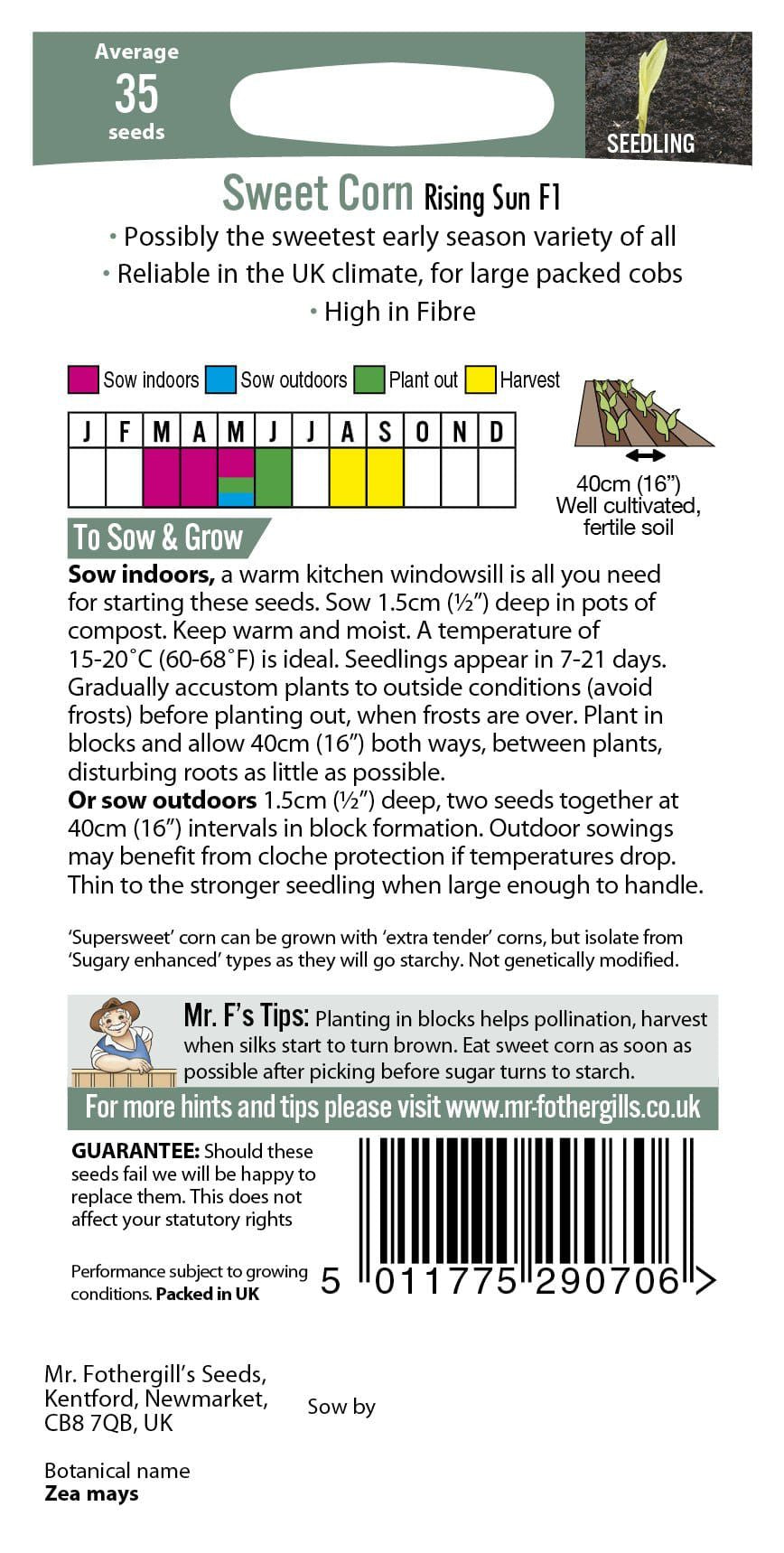 Mr Fothergills Sweet Corn Rising Sun F1 35 Seeds