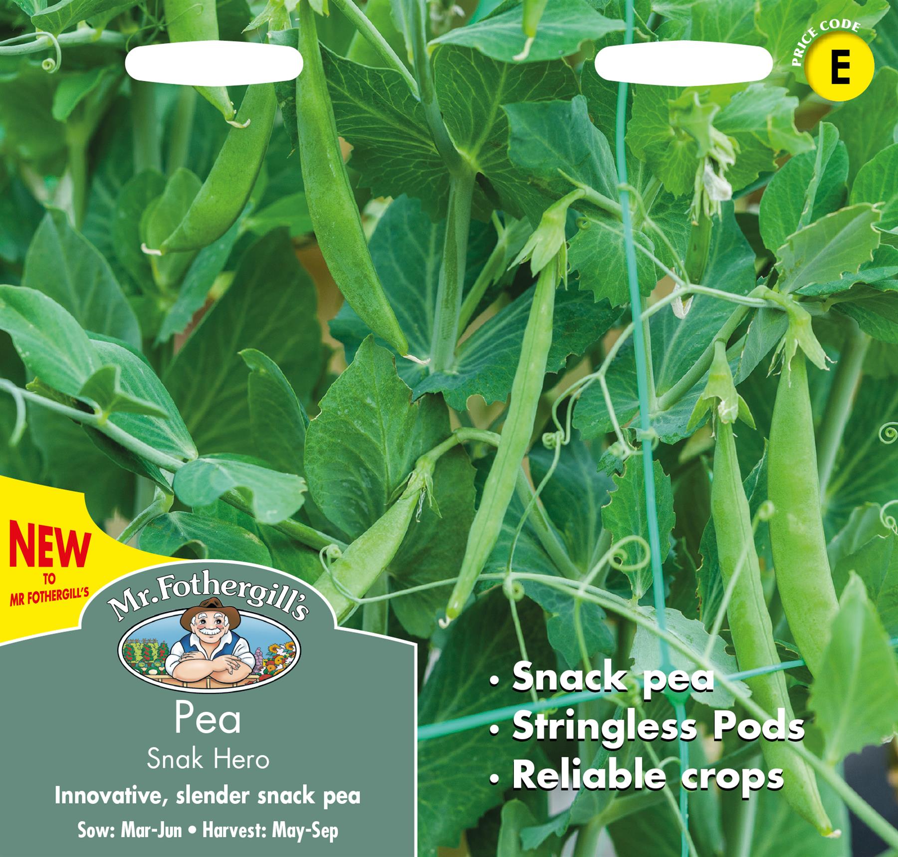 Innovative slender snack pea Long succulent, super sweet pods to eat whole Stress tolerant variety for high yields. Suitable for small gardens. Protect seedlings from birds with twigs or bird scarers. Water well during dry spells.