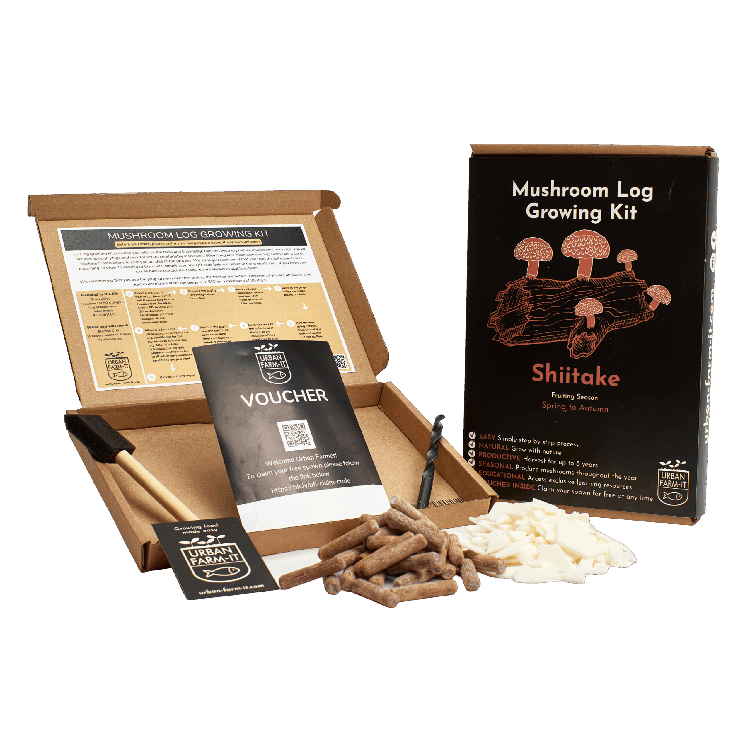 Each kit contains your voucher for 50 fresh shiitake plugs, log sealing wax, waxing brush, drill bit and detailed growing instructions provided by experienced growers.