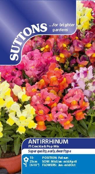 Founded in 1806 Suttons Seeds has become one of the countries best loved brands. When you buy Suttons Seeds you can expect the highest quality seeds that will be in top condition. We are delighted to include the Suttons range among the large range we are offering our customers. This popular item is :Antirrhinum Seeds – F1 Crackle & Pop Mix