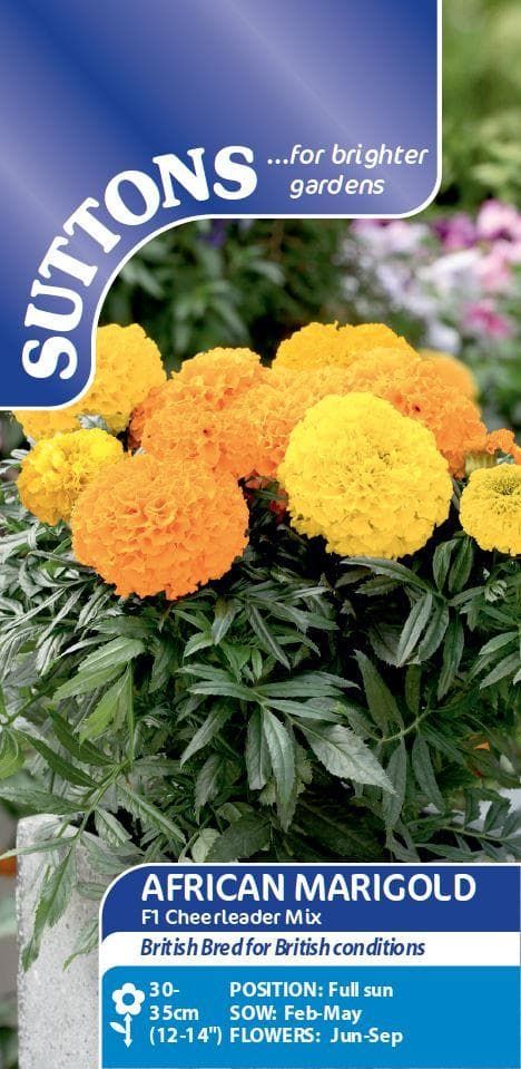 Founded in 1806 Suttons Seeds has become one of the countries best loved brands. When you buy Suttons Seeds you can expect the highest quality seeds that will be in top condition. We are delighted to include the Suttons range among the large range we are offering our customers. This popular item is :Marigold African F1 Cheerleader Mix