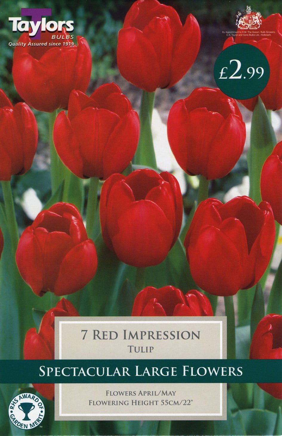 This Tulip has large scarlet blooms. Flowers in April / May Height 55cm