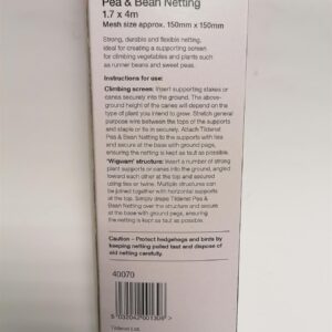 Strong, durable, and flexible netting, ideal for creating a supporting screen for climbing vegetables and plants such as runner bean sand sweet peas.