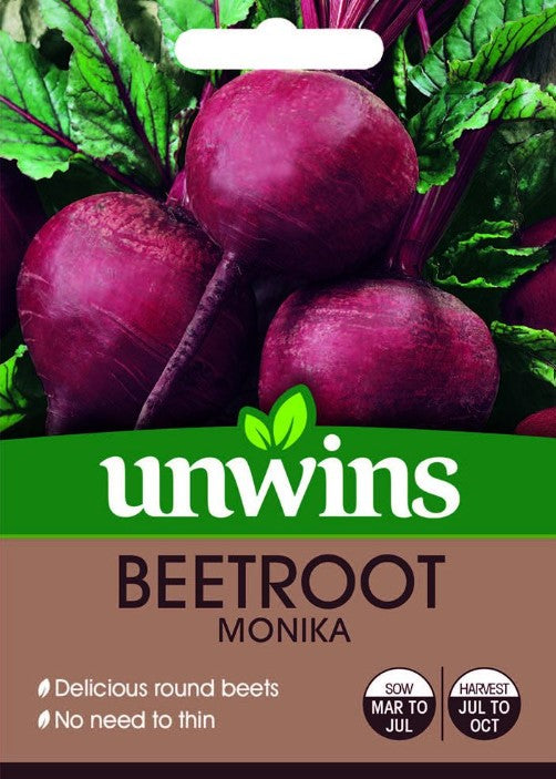 Most beetroot are multi germ – the seed is formed when flowers grow in clusters and there can be 3-5 seedlings per cluster. Monika / Moneta is a monogerm variety, Monika or Moneta produces one seedling per cluster meaning there is no need to thin your beetroot crops anymore once sown! Sow each seed 5-10cm apart and pick alternate plants when young for tender baby beets leaving the rest to mature into a beetroot bonanza. Delicious and tasty beetroot perfect for boiling or roasting.