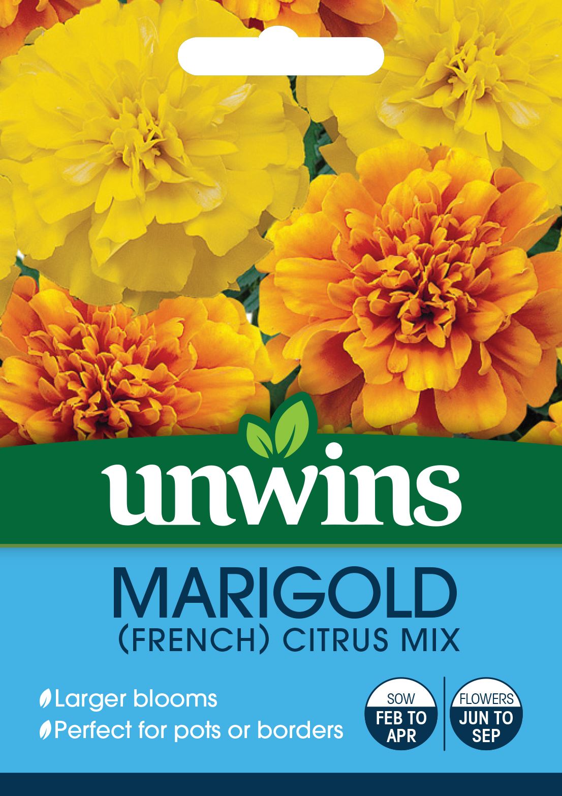 Add a touch of fresh citrus splash to your garden with this special mix of tangerine, deep orange and lemon yellow marigolds. Perfect for containers or borders, French Marigolds thrive in a sunny position.