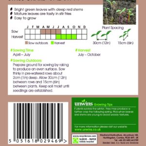 Easy to grow, Swiss Chard Galaxy has bright green leaves and deep red stems, which when harvested early brings colour and deep flavour to salads.