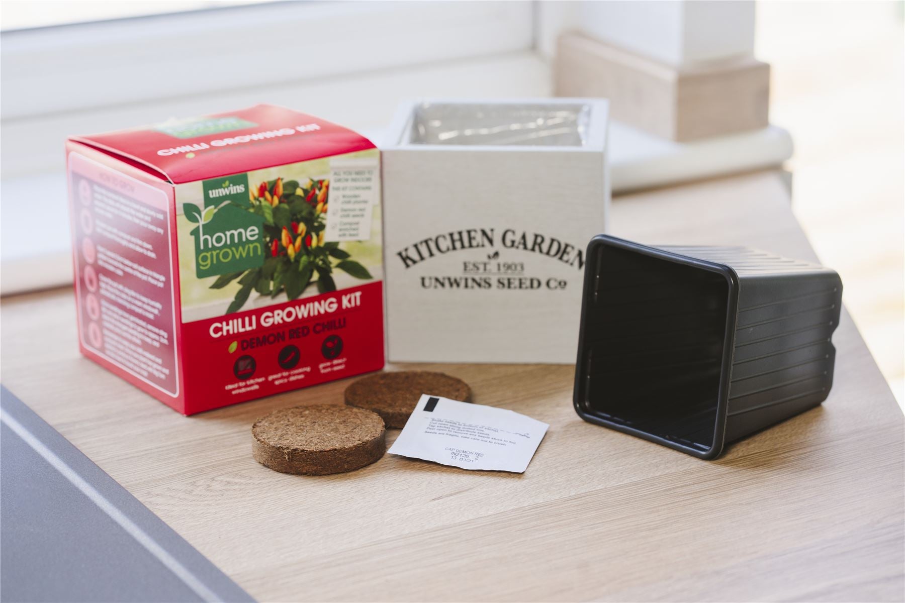 This Homegrown Chilli Growing Kit is perfect for your kitchen windowsill garden. Grow these Chillies direct from seed in this easy to use kit. Its the perfect solution for small space gardening. Great for adding to spicy dishes!