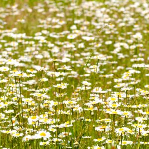 Scatter Oxeye Daisy Leucanthemum Vulgare Ox-eye daisy seeds it is a familiar and attractive grassland perennial plant. The distinctive wild flowers have a classic daisy-like appearance with white petals surrounding a yellow central disk. Watch as the bees and butterflies go flower to flower collecting the nectar.