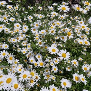 Ox-eye daisy is a familiar and attractive grassland perennial and our largest native member of the daisy family. This perennial is found in many places including meadows and sunny grassland. It flowers in the early summer and is ideal in the wildflower garden. A perfect plant to grow in longer grass, it is a great attraction for bees and butterflies.